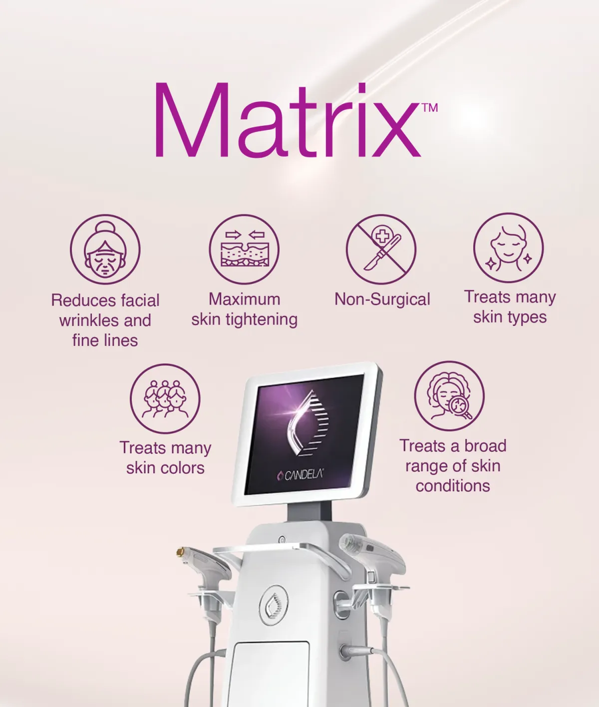 Experience more than microneedling, the Matrix® Skin Renewal System combines advanced RF microneedling, resurfacing, and skin-tightening technologies to treat multiple skin concerns in one powerful, non-surgical treatment.